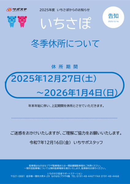 冬季休所のお知らせ(2025/12-2026/1)